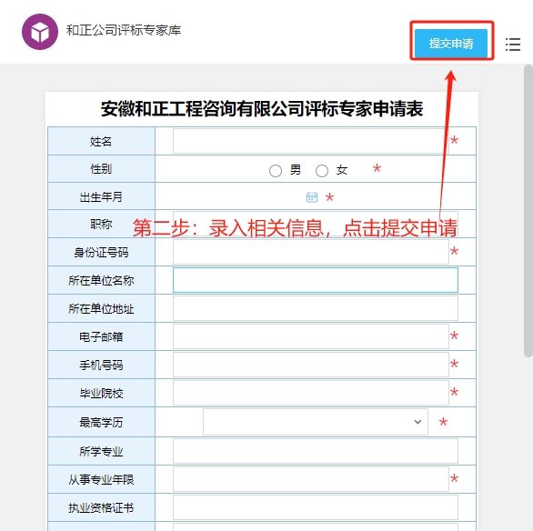 安徽和正工程咨詢有限公司評標專家申請表(點我填寫申請表)