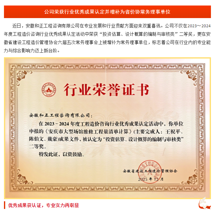公司榮獲行業(yè)優(yōu)秀成果認(rèn)定并增補(bǔ)為省價協(xié)常務(wù)理事單位